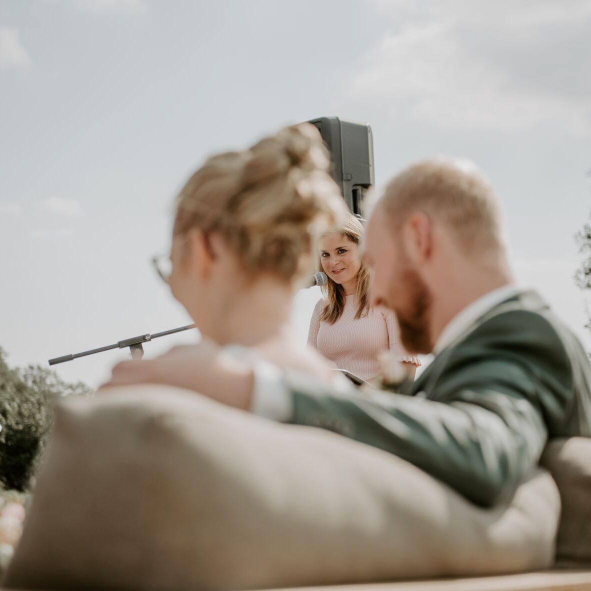 Karlijn heeft ons huwelijk op een geweldige manier vorm gegeven. Ze kwam een paar keer met ons kletsen, zoals een goede vriendin dat kan doen. Dit heeft geresulteerd in een persoonlijke en liefdevolle speech met ONS levensverhaal. Zo mooi verwoord..